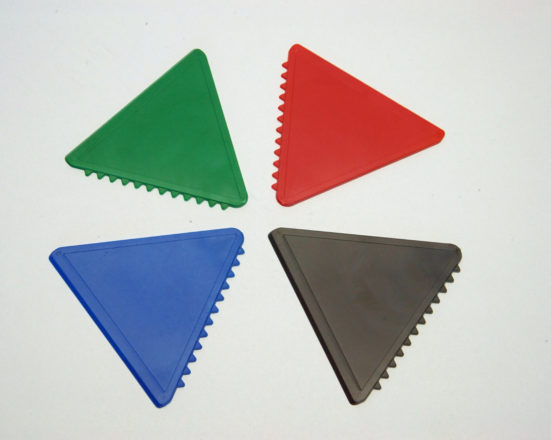 Eiskratzer „Dreieck“ 120 mm breit, aus Kunststoff in div. Farben und zwei Arbeitsflächen.
